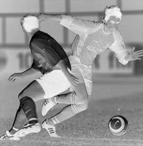 Pada layer "Top" pilih Image / Adjustments / Invert. Ini akan menciptakan layer atas Anda menjadi film negatif.